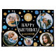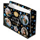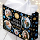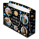 Make your gifts even more special with a custom photo gift bag. This stylish design features a simple pattern of circles and stars, with "Happy Birthday" in a trendy font. You can personalize the template with the recipient's name, age and five of your favorite photos of family, friends and pets! Perfect for milestone birthdays including 18th, 21st, 30th, 40th, 50th and 60th. This allover patterned gift bag comes with your choice of a matte or glossy finish. Printed colors: blue, gold, black and white, or customize the colors with the design tool.