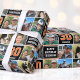 Custom photo gift wrap with a sports jersey style! Personalise the template with six of your favourite photographs, the recipient's name, age, and a 'Happy Birthday' greeting. You can also customise the background colour by using the design editor tool. A seamless pattern wrapping paper, with a square grid and retro block font. Suitable for all ages, from kids and teens to family and friends. Perfect for a landmark 16th, 18th, 21st, 30th, 40th or 50th birthday. Available with a matte or glossy finish. Printed colours: orange, black and white.