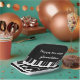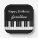Elegant party paper plates printed with a piano keyboard, and customisable wording so you can add a name or other text. Perfect party plates for piano players.