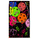 Festive birthday card for a pickleball player with colourful confetti and pickleball balloons on a black background. Blue, red, bright green, yellow, hot pink, and lavender balloons made from pickleball balls. Colourful pickleball-themed birthday gift bag for your pickleball-loving mum, dad, uncle, aunt, brother, sister, neighbour, grandpa, grandma, husband, wife, friend, or work colleague who won't stop talking about pickleball.