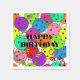 Festive birthday party napkins for a pickleball player with colourful confetti and pickleball balloons on a white background. Blue, red, bright green, yellow, hot pink, and lavender balloons made from pickleball balls. Colourful pickleball-themed birthday party napkins for your pickleball-loving mum, dad, uncle, aunt, brother, sister, neighbour, grandpa, grandma, husband, wife, friend, or work colleague who won't stop talking about pickleball.