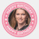 Happy Birthday picture Frame in Pink Classic Round Sticker
