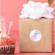 Happy birthday pink purple pastel name simple eleg classic round sticker