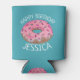 Happy Birthday Pink Teal Frosted Doughnut Doughnut Can Cooler