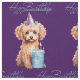Happy Birthday Poodle with Party Hat & Bday Cake Fabric