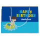 Custom kids swimming pool Happy Birthday gift bag for a brunette child on the swim team during the summer. Features a bright, fun pop of colours and a cool swimming boy in an inner tube. Customise for a special children's gift.