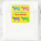 Celebrate a birthday with colourful gift wrap or greeting card stickers featuring pop art style cows in blue, green, purple and pink on a bright yellow background. Add the name of the gift recipient for a one-of-a-kind birthday gift! This funky cow pattern is perfect for kids and adults! Click the CUSTOMIZE button to add a name, change the font style or colour.