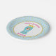 Happy Birthday princess paper plate with a lovely little girl on white and turquoise with gold confetti. Text and number can be personalised.