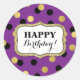 Happy Birthday Purple Black Gold Confetti Classic Round Sticker