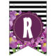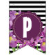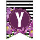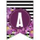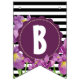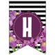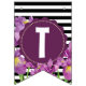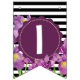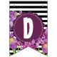 Happy Birthday Purple Iris Black White Stripes Bunting