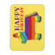 Magnet design features an original illustration of a rainbow donkey pinata on a yellow background, with HAPPY BIRTHDAY in a fun font.