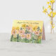 "May you live this day with joy" Christian birthday greeting card decorated with a garden of wildflowers with cameo pink primrose and yellow dandelions with a few sprigs of rosemary hand drawn with ink and painted with watercolor. On the inside is a shade of salmon pink with text you can edit to fit your needs.