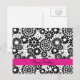 Happy Birthday Retro Black White Chic Folk Flowers Postcard