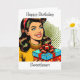 Happy Birthday | Retro Pop Art Woman Holding Gift Card