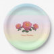 Happy Birthday rose flowers on pastel shades background Paper Plate. Text can be customised.