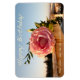 Happy Birthday, May your day be as beautiful as you are. Rose auf Geländer mit Himmel im Hintergrund.