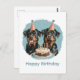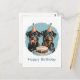 Cute illustration of Rottweiler dogs dressed up for a birthday celebration. Perfect for pet lovers or dog parents!