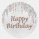 Happy Birthday silver glitter drips rose gold pink Classic Round Sticker