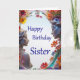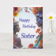 The words "Happy Birthday Sister" are prominently displayed in the centre of the card in a graceful, flowing script, with a deep blue hue that complements the surrounding floral elements. The overall design exudes warmth, love, and a sense of deep, sisterly bond.