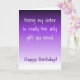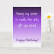 I was concerned that the card would not arrive on time but Zazzle came up trumps and the card arrived on the day before her birthday - perfect! I didn't see the card as it went straight to our family in New Zealand. However they did send a photo and it looked excellent!