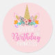happy Birthday Sister Unicorn Party Pink Classic Round Sticker