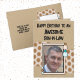 Arrived on time for birthday was just as described. Very pleased with it. The picture and the wording where great nice bright colours.