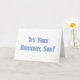 A cool, crisp, white background features bright, light, blue letters on this birthday greeting for a son.