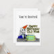 A funny birthday design featuring a skeleton man with party hat and spider webs strung all over, sitting in front of his birthday cake. Happy birthday old man!