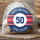 Happy Birthday Sports Jersey Stripes Name and Age Classic Round Sticker