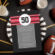 Red, White and Black - This sporty and racing stripes design is perfect for any athlete playing football, soccer or baseball. You change the numbers to your lucky number or even a special age for a birthday celebration. A rugged and masculine design with an area for any Anniversary Date - 25th, 30th, 40th, 50th, 60th, 70th.