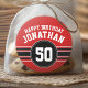 Happy Birthday Sports Stripes with Age - Red Black Classic Round Sticker