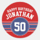 Happy Birthday Sports Stripes with Age - Red Blue Classic Round Sticker