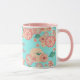 Happy Birthday - Spring Peach Flowers Garden Hand Drawn Pattern, Decoration, Boho-chic style. Floral Decorative Ornament. Elegant peony, blossom sakuras, lanterns and Spring flowers, peacock flying, gold, turquoise, pink colour, turquoise vintage background with Fortune luck symbol, art. Trendy Design with text template, for Home > Kitchen & Dining > Drinkware > Mugs & Cups, Birthday, Anniversary, Chinese New Year. Holiday gift, decor. Customise Template for Personalised by adding Your Wishes Text, Date and Names
