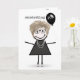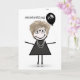 Cute stick figure girl with hair, sneakers, glasses, polka dot dress, pearl necklace, and black balloon for any age birthday.