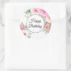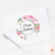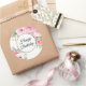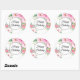 Large round happy birthday sticker is shown with a pretty pink floral print.