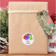 This small size round sticker is shown with a festive Happy Birthday balloons print.
