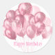 This large size round sticker is shown with a festive Happy Birthday balloons print.