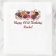Happy Birthday name and age personalised rectangle stickers in beautiful fall florals magenta, burgundy and orange.
