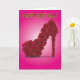 Original greeting card with a beautiful stiletto shoe full of red roses with the birthday greeting in gold tones and rhinestones.