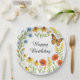 Happy Birthday Summer Flowers Paper Plate