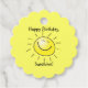 Set of 12 scalloped favour tags with an image of a smiling yellow sun on yellow and optional text. The back is yellow. See the entire Birthday Favour & Gift Tag collection in the PARTY FAVORS section.