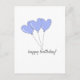 NewParkLane - Sweet Birthday Postcard, featuring three simple hand-drawn heart shaped purple balloons, with 'Happy birthday’ quote in handwritten typography.
