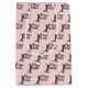 Grey tabby cat playing with Happy Birthday message on blush pink background.