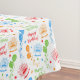 A Beautiful Happy Birthday Tablecloth With Cake, Balloons And The Typography Happy Birthday In Pastel Colours