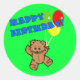 Happy Birthday Teddy Bear with Balloons Classic Round Sticker