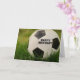 A textured grungy soccer ball in the tall green grass of summer with the words Happy Birthday. Totally customisable for you to personalise as you please! Perfect for the sports fan!
