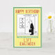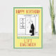 A birthday card with a cartoon of a man waiting for a lift or elevator. The buttons have Up, Down, and Lucky Dip as options. Ideal card for any Lift Technician or Lift Engineer.
