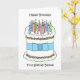 A cartoon illustration of a white birthday cake covered in multi colored lit candles. The words 'Happy Birthday to a special bishop' accompany the image.