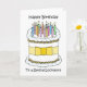 A cartoon cake covered in lit candles and accompanied by the words 'Happy Birthday to a Special Locksmith'.