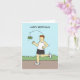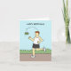A cartoon of a man running along after a beer which hangs in front of him. The words 'Happy Birthday' accompany the image.